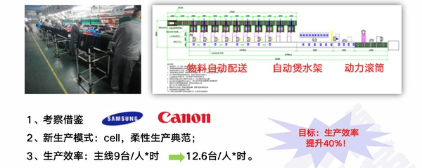 生產(chǎn)模式仿照精益短線,單人設(shè)備投入稍高正常生產(chǎn)線,單人效率較正常生產(chǎn)線高20%以上;