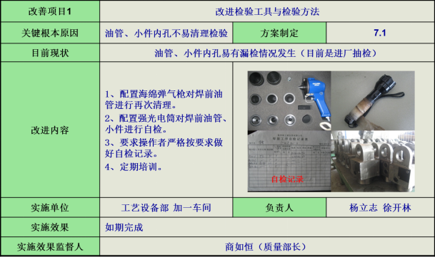 4)油管、小件檢驗,針對油管、小件內(nèi)孔不易清理檢驗問題,改進(jìn)檢驗工具和檢驗方法,避免漏檢情況發(fā)生。