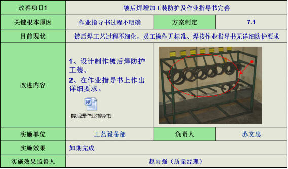 6)鍍后焊防護(hù),針對鍍后焊作業(yè)指導(dǎo)書不明確問題,增加鍍后焊工裝防護(hù),并完善作業(yè)指導(dǎo)書。