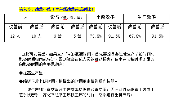 該廠某系列產品的加工工藝流程為銑→鉆→磨→組裝。該車間實行5天8小時工作制,每周的產量為3200件。該加工廠生產線平衡改善如下:
