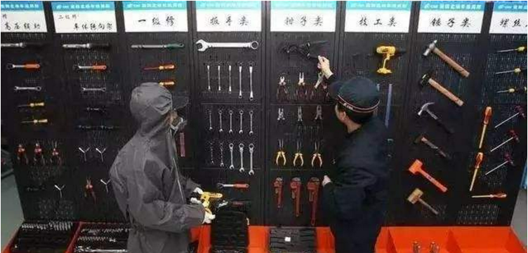 方法3:做成看板展示式或多層推拉式的展示板,下圖為看板展示式的展示板,所有的工具、零件都有固定的位置和標識,采用形跡管理的方式進行管理,查找起來非常方便。