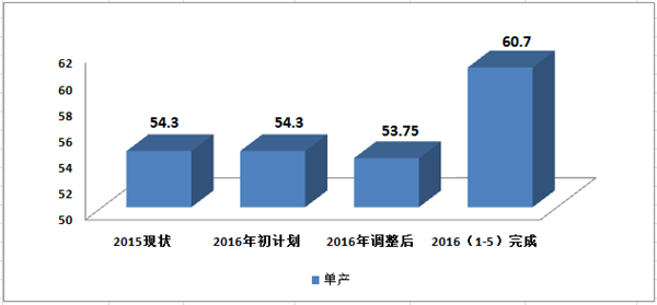 a)單產成果:2016年初單產計劃54.1萬噸/月/隊,剔除搬家倒面停產影響,2016年1-5月份單產水平60.32萬噸/月, 較年初計劃提升11.50 %